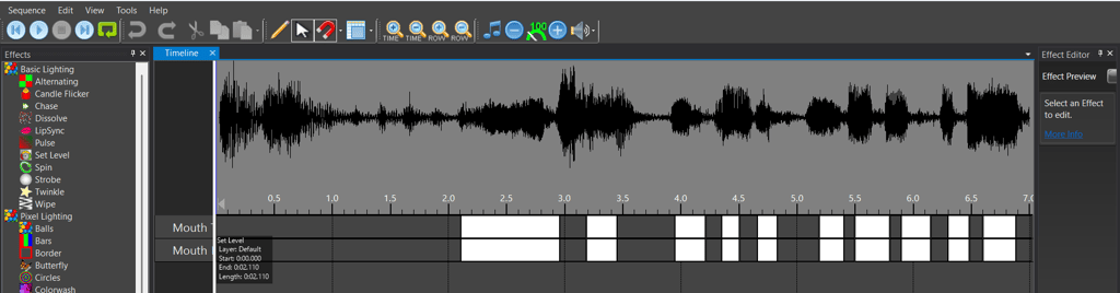 I used the lighting software, Vixen, to sync the motor movements with the 10 different audio clips. I imported the Vixen files into Microsoft Visual Studio Code to communicate to a ESP32 Microcontroller.