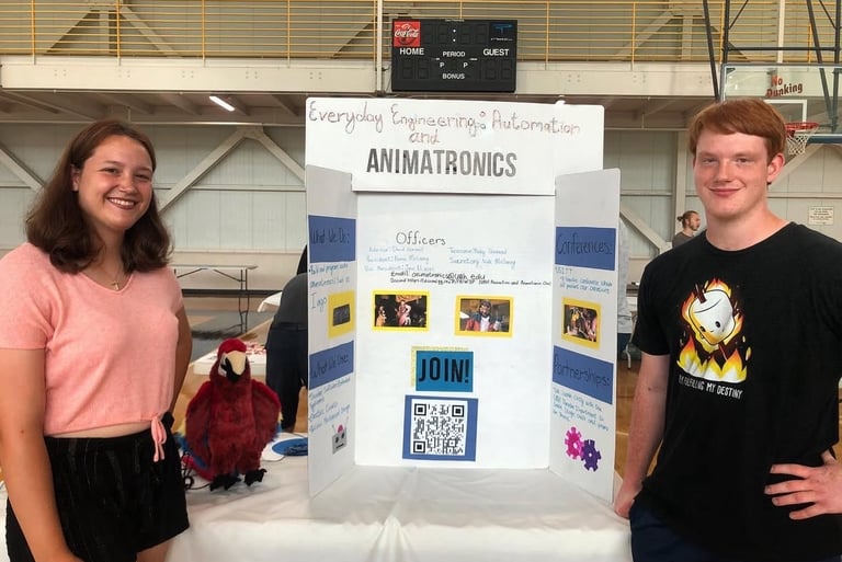 Iago was brought to the UAH Registered Student Organization Fair to recruit students for the Everyday Engineering: Automation and Animatronics Club. Iago performed all 10 audio clips successfully at the fair and the club gained 23 new members.