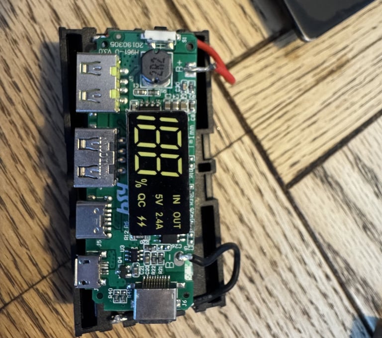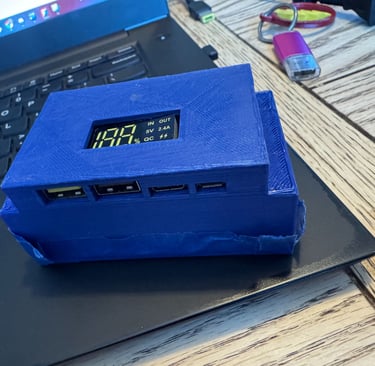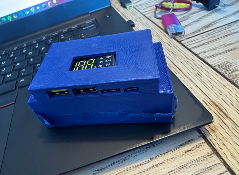 The goal of this project was to create and design an enclosure for a portable charger. For this project, I first soldered wires between a battery case to the ports. I then 3D modeled a case in Autodesk Inventor. The enclosure was 3D printed and the batteries and ports were put into the enclosure to create a portable charger. The portable charger met requirements of being small enough for people to keep with them for traveling.